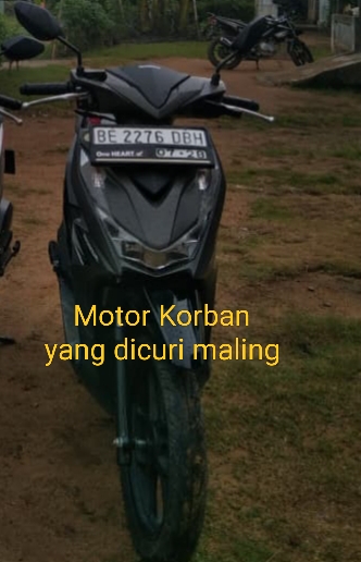 Lampung Selatan,–Aksi pencurian motor kembali terjadi di Lampung Selatan. Kali ini, seorang wartawan menjadi korban setelah Honda Beat BE 2276 DBH miliknya raib digondol maling saat terparkir di samping rumah milik korban, yang beralamat di Desa Banjarsari, Waysulan Lampung Selatan.Minggu (10/8/2025) sekitar pukul 18.30 WIB.